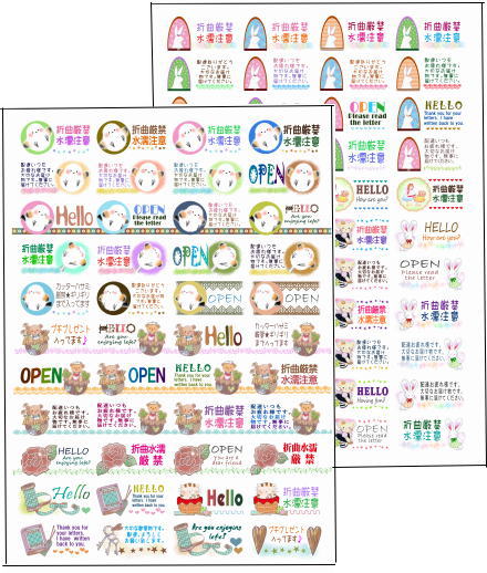文通シール福袋 送料込み 1,400円 お振込み価格 1,200円 44カットシールを4シート。 合計176枚のオリジナルシールの福袋です。 文通や手紙・小さな荷物を発送する際役立つ 文字入りシールのみの福袋。 折曲厳禁・配達員さんへのメッセージ・封緘・等。 サプライズ柄有り ![]() 他に2シートございます。 |
